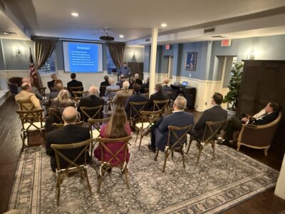 Dr. Edwin S. Hart III, the society historian, introduced Harris for his remarks, which were part of an ongoing lecture series sponsored by the PSSR. The event at Historic Waynesborough, the society headquarters, was well attended.