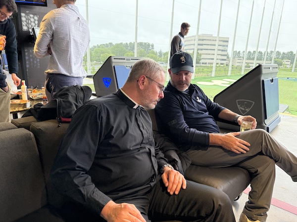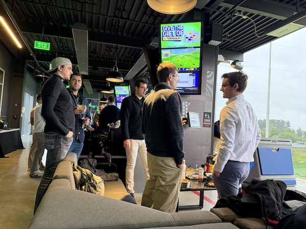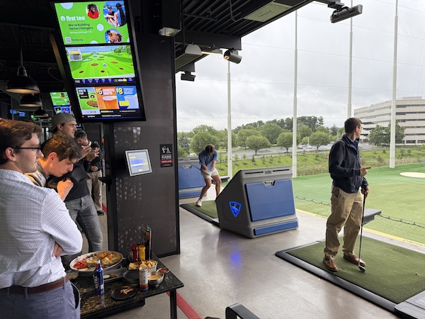 On Wednesday, May 21st, over 30 of our younger members and guests (aka prospective members) joined our Younger Members Committee and a few members of our Board of Managers at the all-new Top Golf in King of Prussia, Pennsylvania to spend some quality time “golfing” and socializing at the “range”. This new golf venue opened recently and has been a huge draw for many in the suburbs. This particular evening, it drew a great crowd of our Younger Members who carpooled out from the city and in from the distant exurbs. Our Younger Members Committee (chaired by Chris Alexander and Spencer Stokes), with the enormous support and partnership of our Color Guard Captain Robert J. McNelly, Esq., hosted a terrific evening that included classic appetizers, a full dinner spread, exclusive hitting bays and, of course, open bar for the evening.
